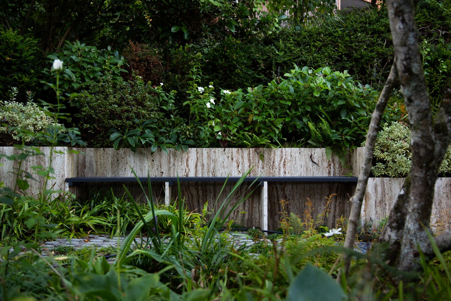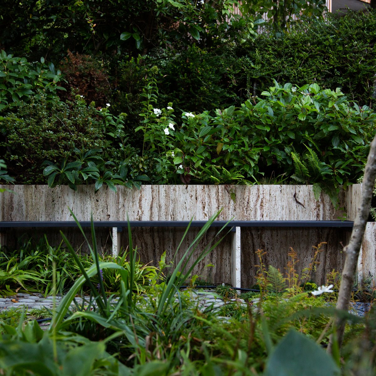 Mit einer Vielzahl an verschiedenen Formen und Materialien entstand ein abwechslungsreicher und trotzdem harmonischer, neuer Gartenteil.