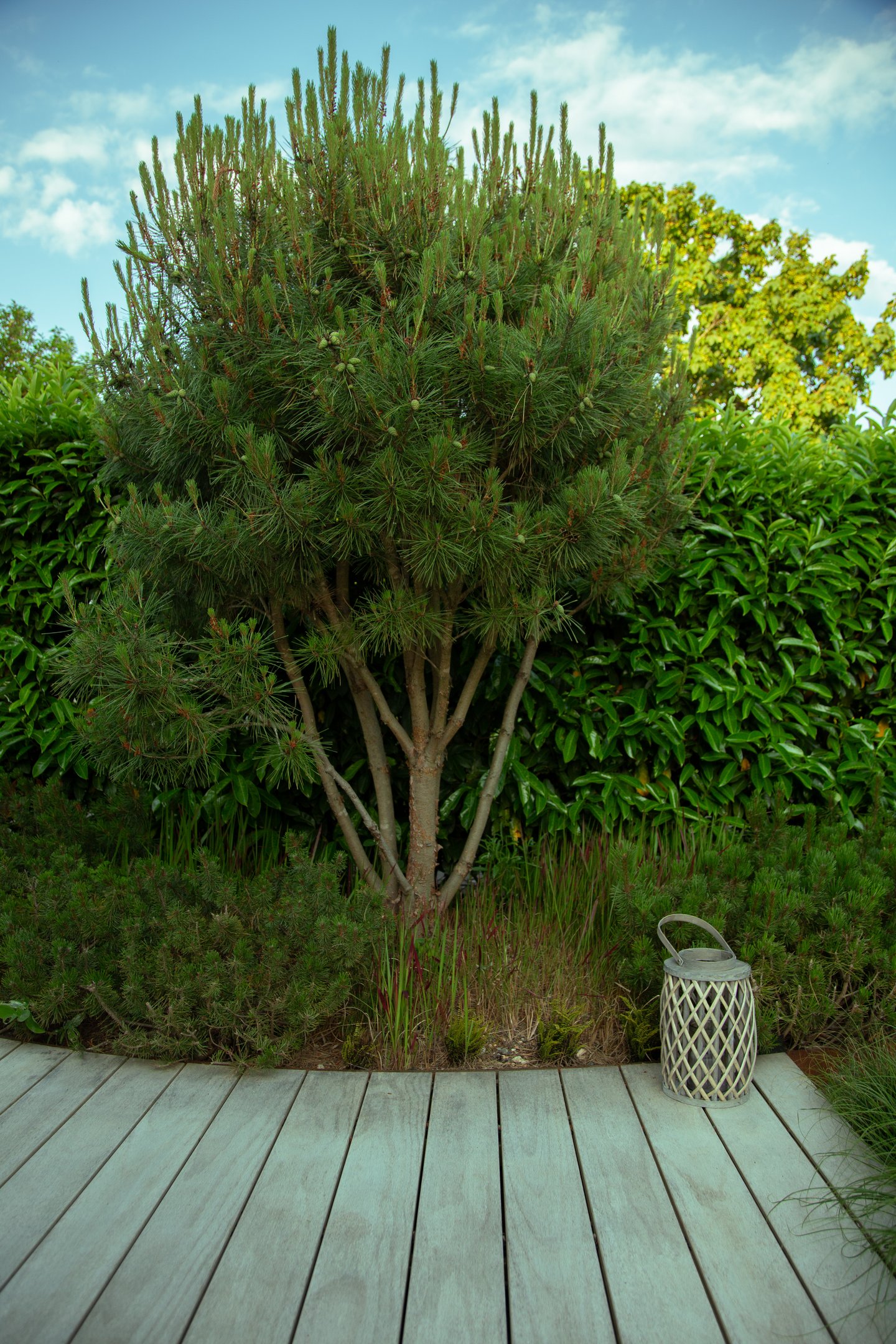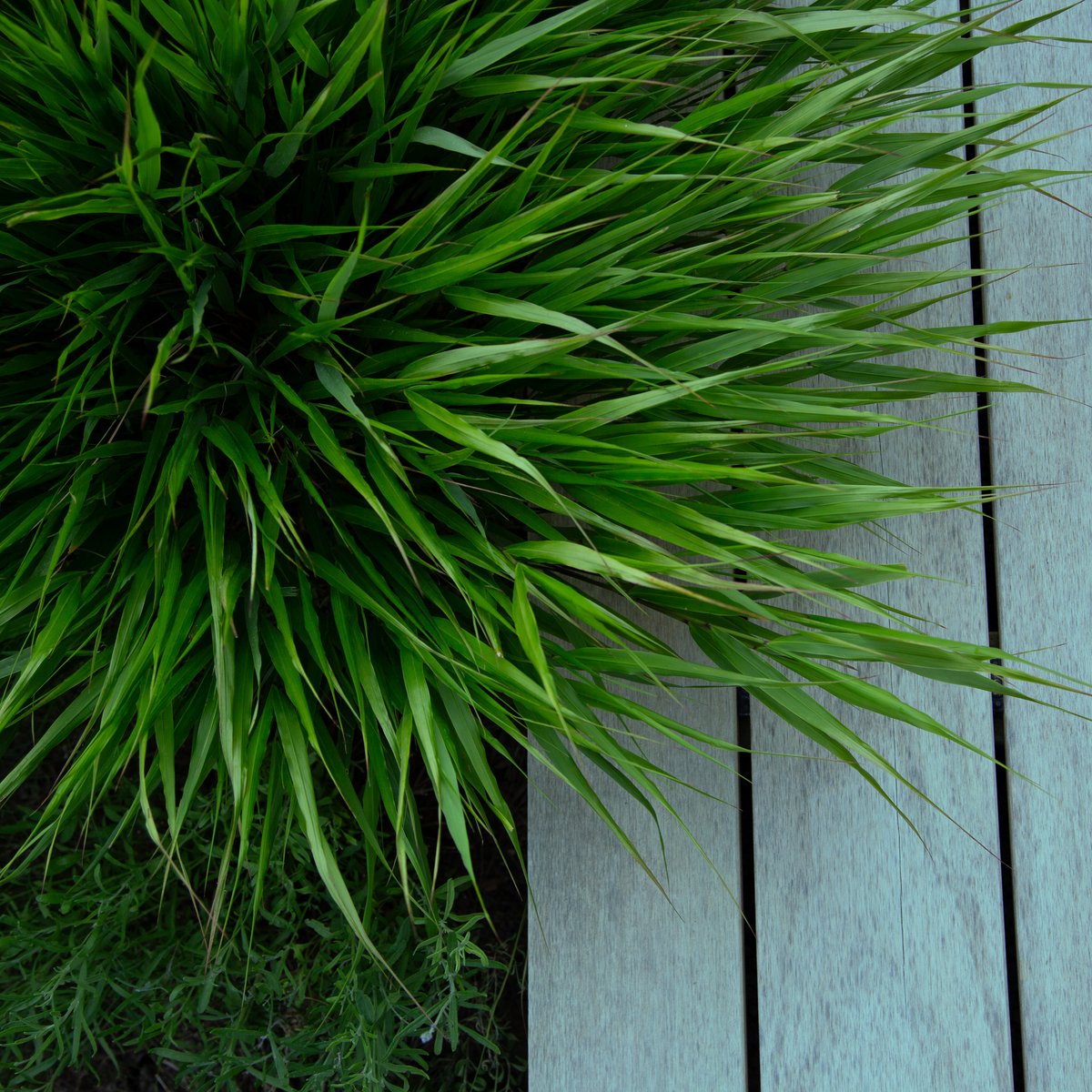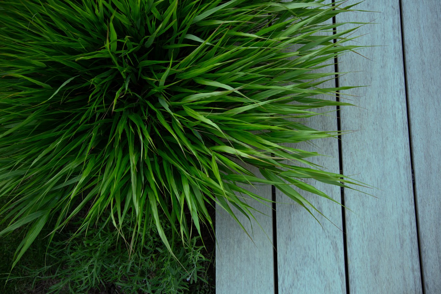 Eichenholz-Gefäße setzen Akzente und bringen organische Elemente in das Gesamtbild ein. Besonderes Augenmerk wurde auf die Gestaltung schattiger Bereiche gelegt: Hier sorgt eine attraktive Auswahl an Pflanzen für eine blühende Oase