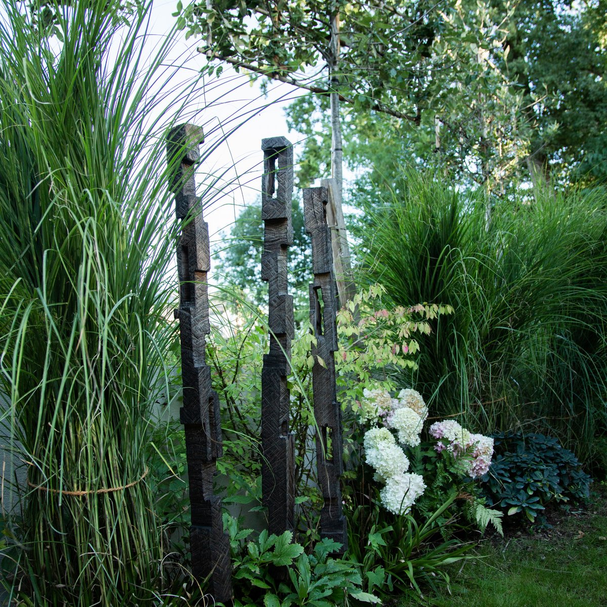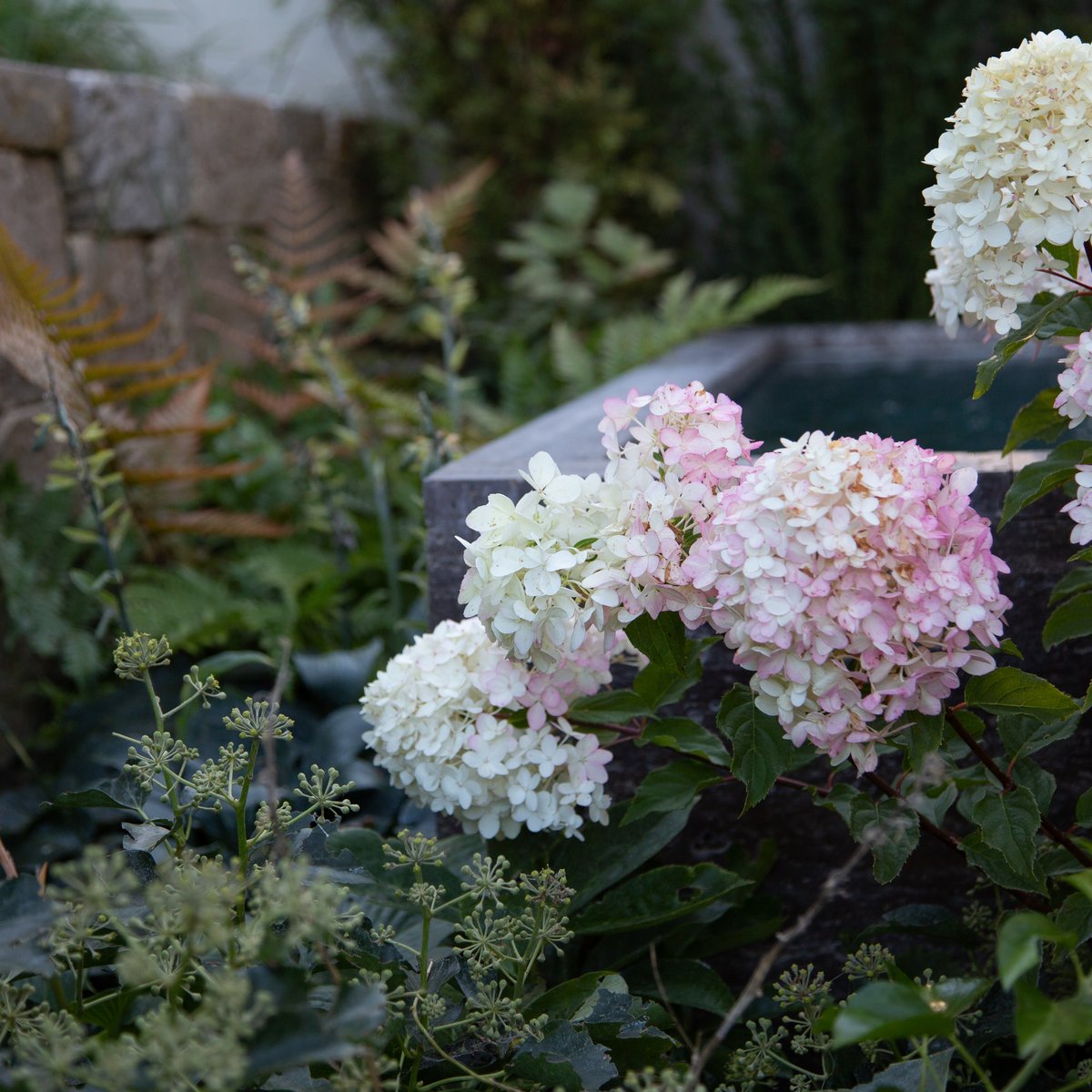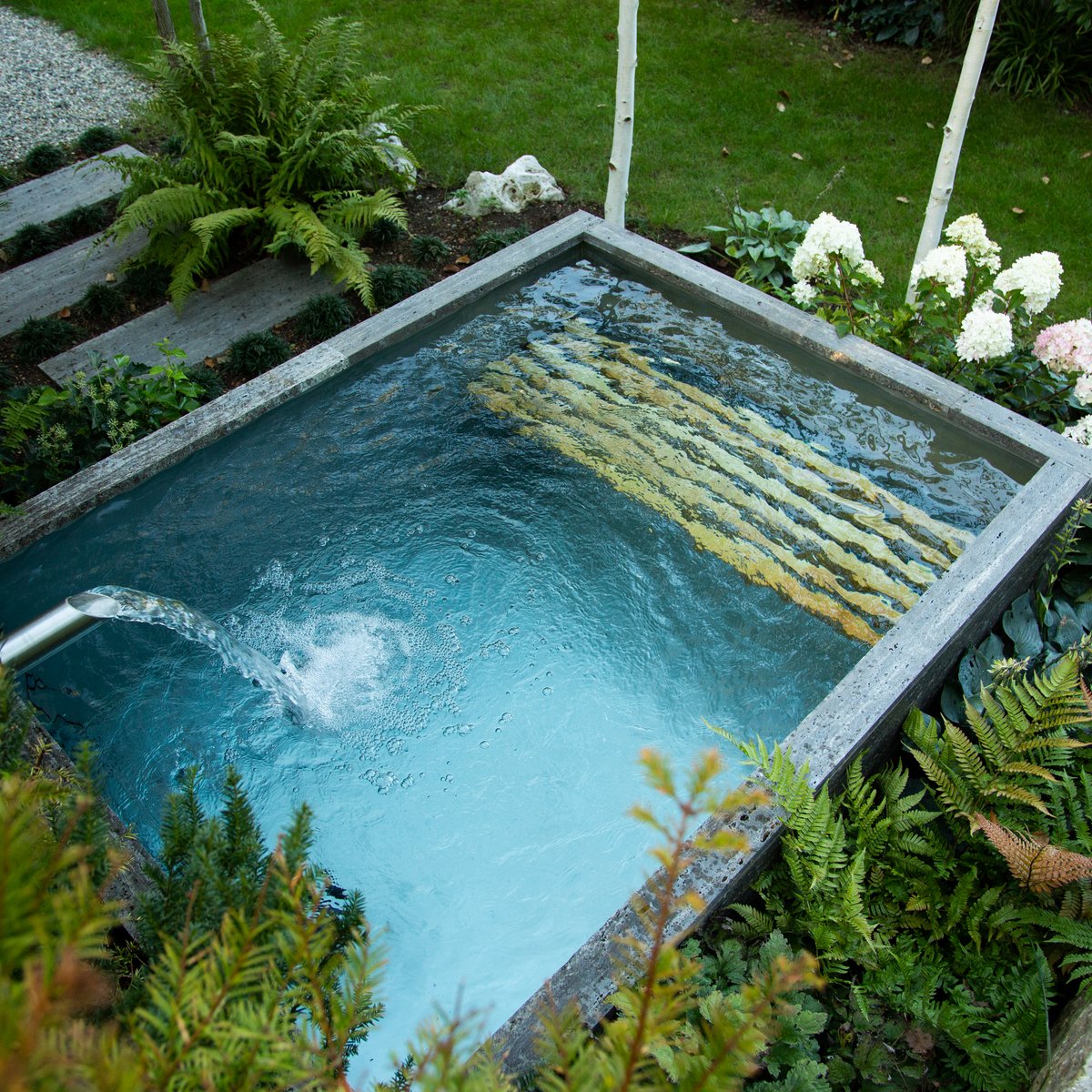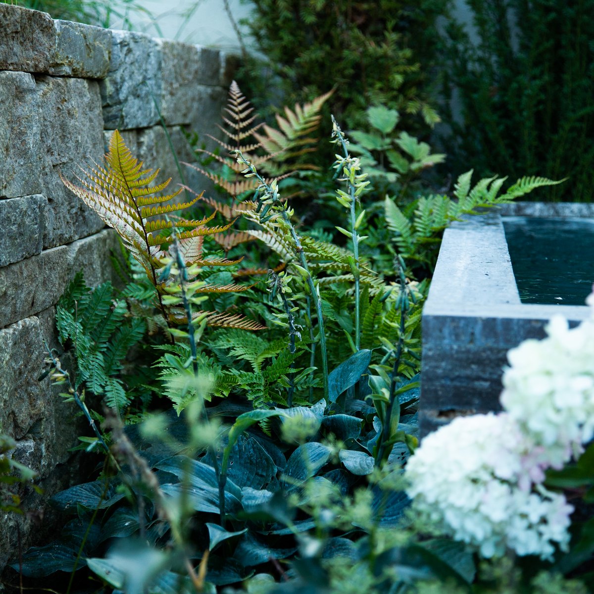 Mit einer geschickten Raumaufteilung und pflanzlichen Raumteilern wurde in diesem kleinen Garten von 90m2 ein neuer Spannungsbogen aufgebaut. Verschiedene Beläge und Pflanzbereiche geben den Räumen eine eigene Bedeutung. Auf diesem kleinen Raum lassen sich versteckte Ecken des Gartens nur erahnen, bevor man sie auf den zweiten Blick genauer entdecken kann. Mit einigen stilvollen Elementen wie Dusche, Brunnen und Feuerstelle wurden wohnliche Akzente gesetzt, die den Garten spannend und einladend wirken lassen.