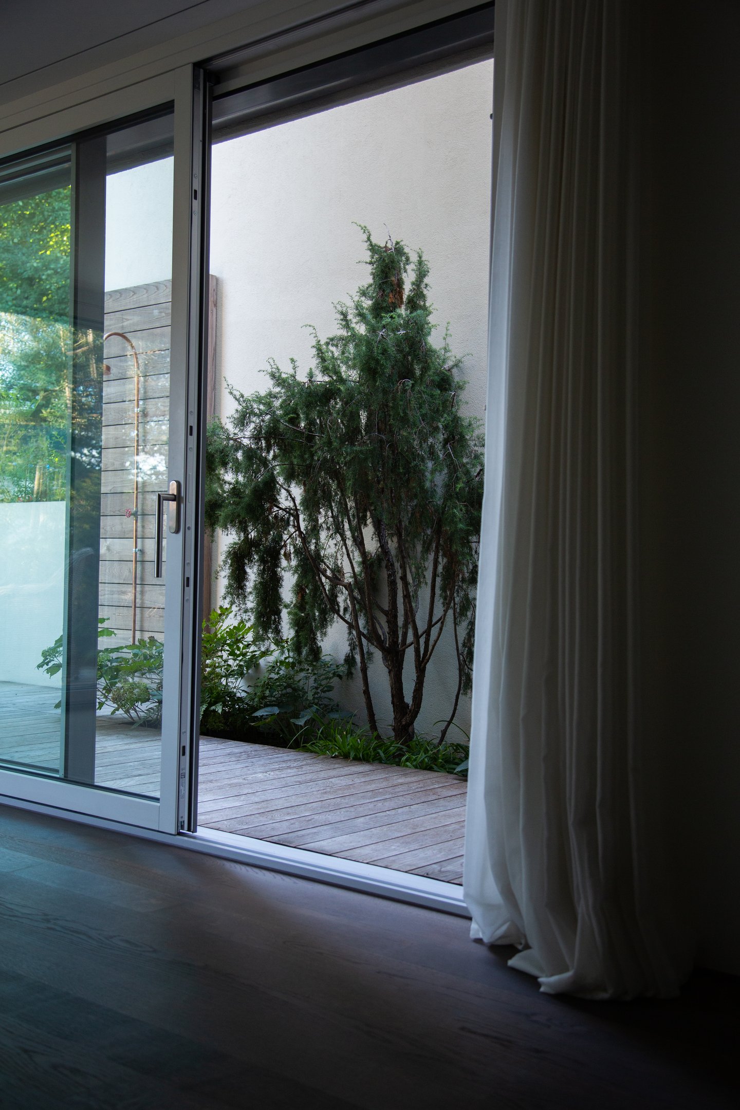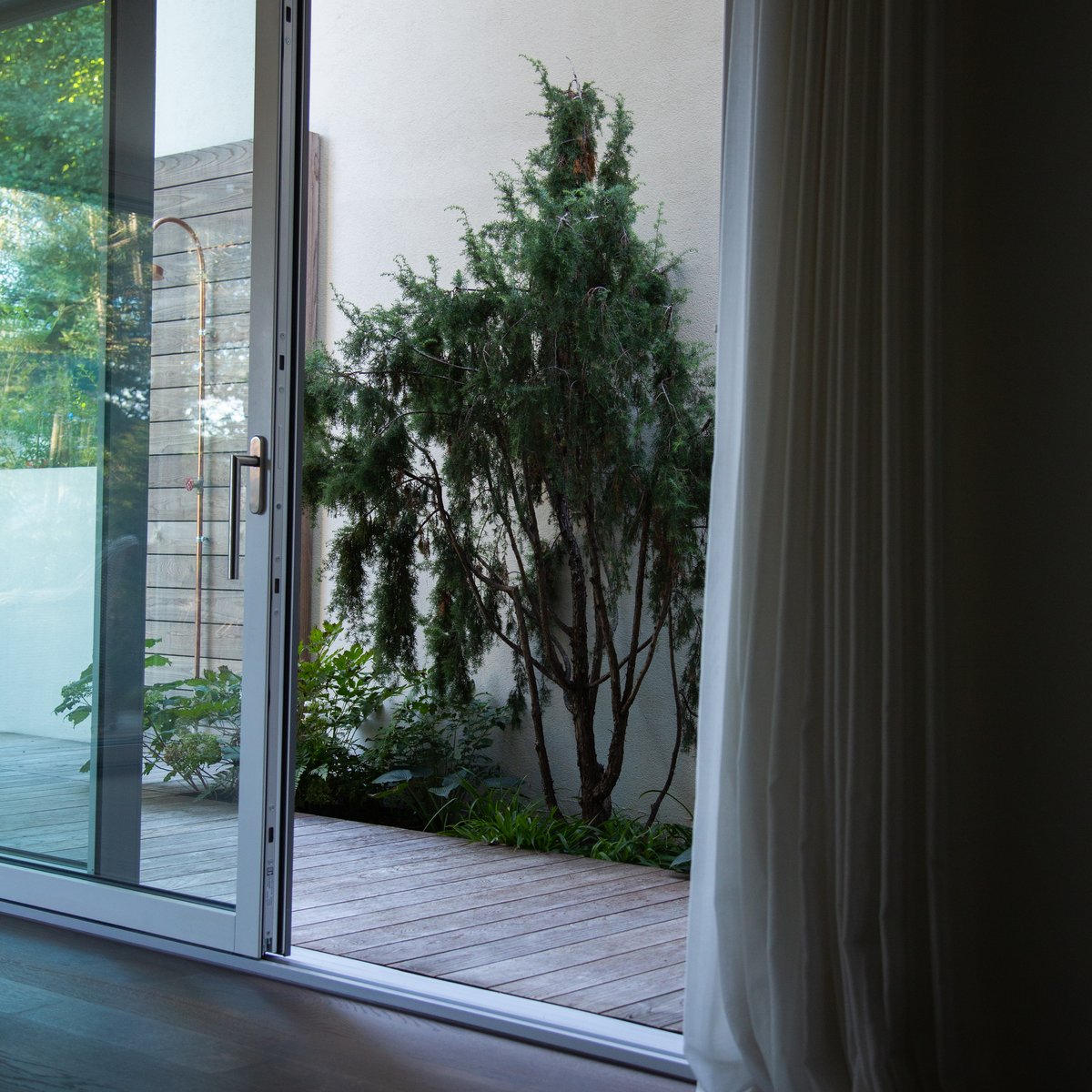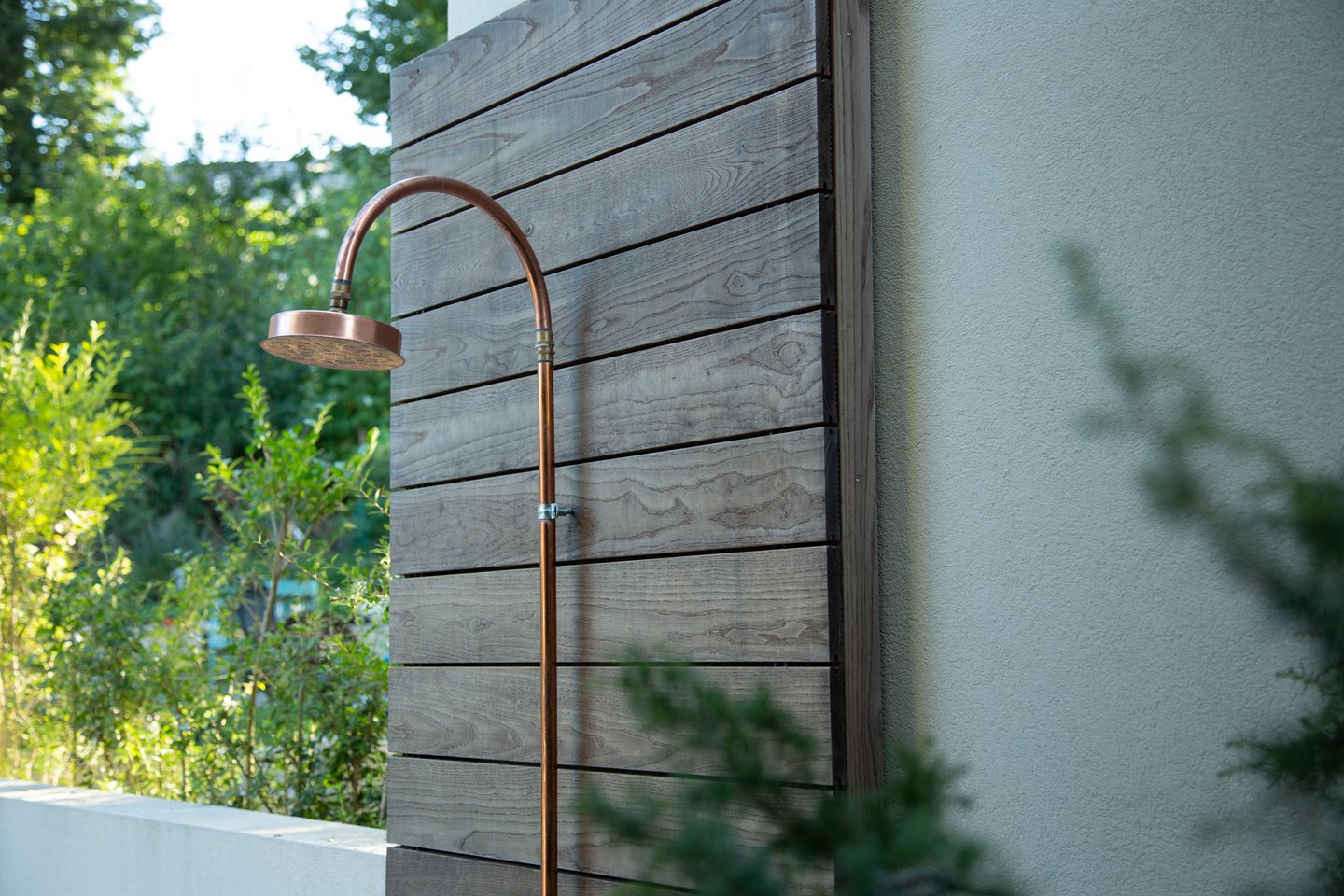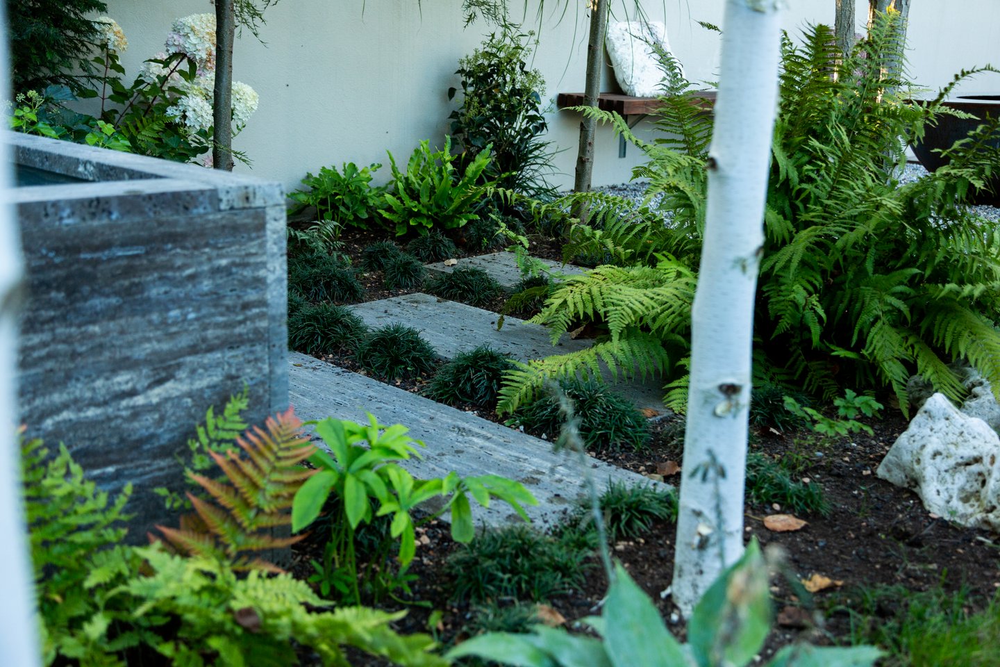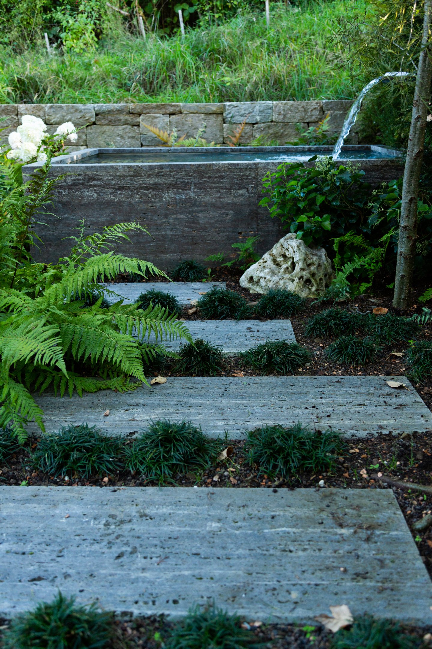 Mit einer geschickten Raumaufteilung und pflanzlichen Raumteilern wurde in diesem kleinen Garten von 90m2 ein neuer Spannungsbogen aufgebaut. Verschiedene Beläge und Pflanzbereiche geben den Räumen eine eigene Bedeutung. Auf diesem kleinen Raum lassen sich versteckte Ecken des Gartens nur erahnen, bevor man sie auf den zweiten Blick genauer entdecken kann. Mit einigen stilvollen Elementen wie Dusche, Brunnen und Feuerstelle wurden wohnliche Akzente gesetzt, die den Garten spannend und einladend wirken lassen.